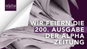 Wir freuen uns und sind sehr stolz, dass unsere nächste alpha-Zeitung die Nummer 200 tragen wird. Das bedeutet auch, dass der Club alpha seit mehr als 38 Jahren Programm von Frauen für Frauen macht und das mit anhaltendem Erfolg.