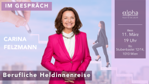 Zum anderen verwendet Felzmann das Thema der Held*innenreise für ihren Podcast: 57ig jährig, nach Übergabe ihrer Marketing & PR Agentur an ihre Nachfolger*innen startete sie „Nonna:Restart! eine berufliche Heldinnenreise 50+“, der Frauen dazu motivieren und ermutigen soll, sich beruflich neu zu orientieren.