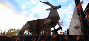 Der Origami Hirsch macht einen Zwischenstopp im MQ auf seinem Weg zur 61. Biennale di Venezia.